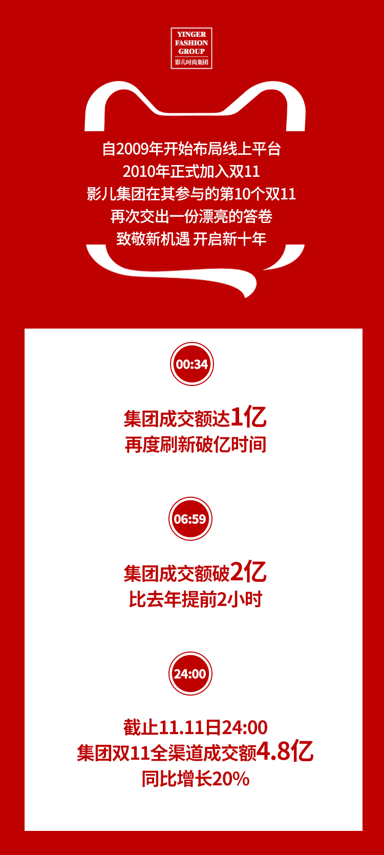 影儿集团双11全渠道成交额4.8亿 同比增长20%
