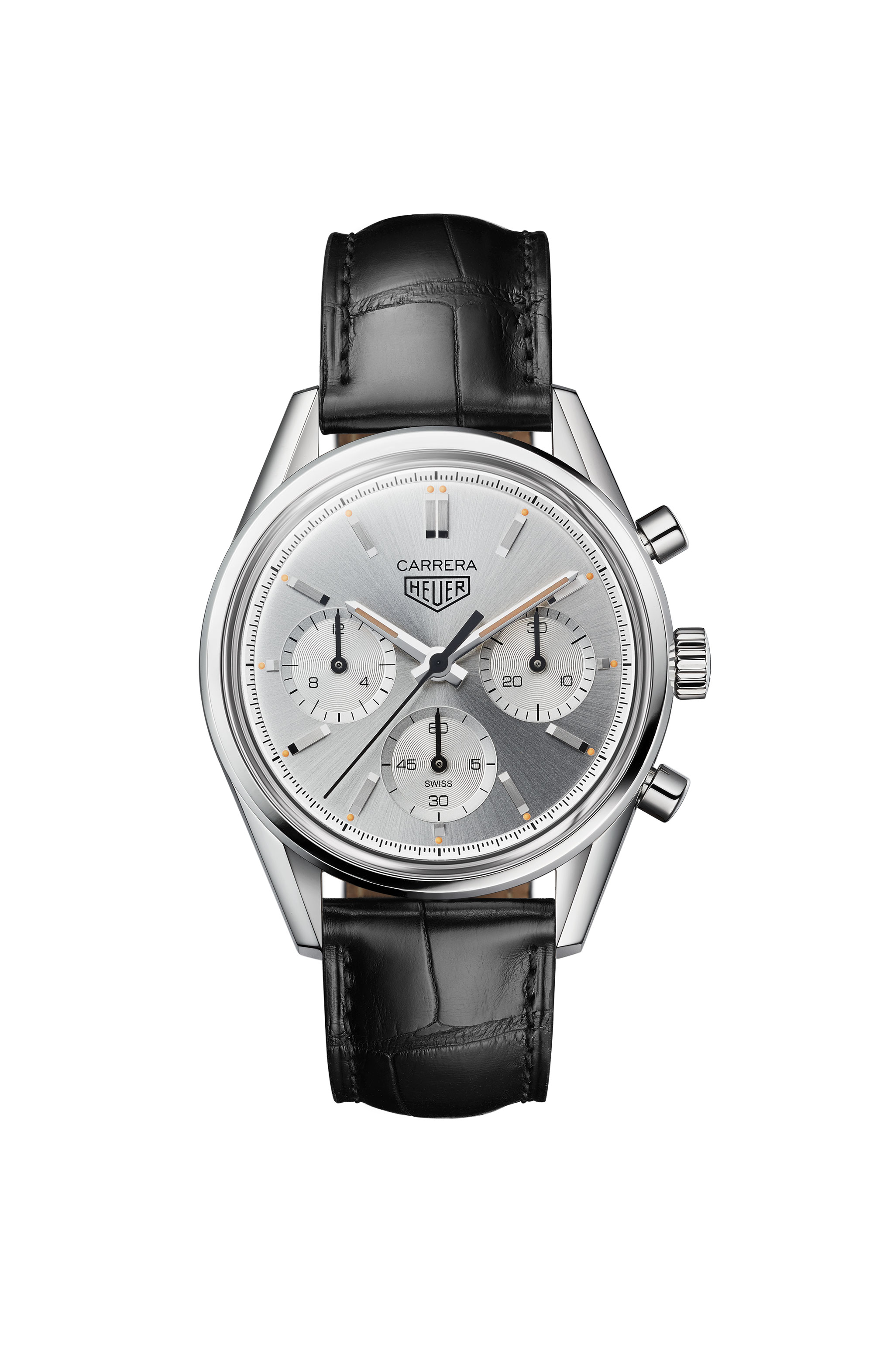 这款全新的精钢计时码表承袭了初代产品的诸多设计亮点,例如隽永典雅的表盘、抛光表壳和按钮。但腕表的形状和之前略有不同,尺寸也从最初的36毫米变为如今的39毫米。由于1963年Valjoux72机芯和现在的Heuer02机芯结构不同,运行秒钟指示器现位于6点钟位置,而不再是9点钟。与原始表款相比,另一个变化在于中央时针和分针的形状。如今它们采用刻面设计,并涂有米色SuperLuminova ®荧光涂料。腕表搭载弧形蓝宝石表镜,表盘上印有高辨识度的Carrera字样和HEUER盾牌标识。这一复古外观让人联想起原版豪雅卡莱拉系列腕表。