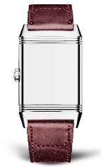 积家Reverso Tribute翻转系列小秒针腕表。以简约纯粹的设计搭配魅力独具的酒红色表盘以及由知名皮靴制造商 Casa Fagliano设计的同色系明针缝线表带。饰以富有特色的装饰刻纹,配备太子妃形指针,手工镶贴时标,并在6时位置设有小秒针显示窗。遵循一贯的创作传统,腕表背面提供了个性化定制空间,供您自由挥洒无限创意。