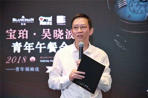 现场,宝珀中国区副总裁廖信嘉先生谈起了发起“宝珀·吴晓波青年午餐会”的初衷:“宝珀是一个匠人,也是世界上第一个注册诞生的腕表品牌,历经283年至今活力不减。宝珀在过去10多年间有近50项全新机芯创新,是顶级品牌中最具有创新能力的品牌。正因如此,宝珀也希望能在如何成为一个百年品牌、如何去发展和更新自己等方面,与中国青年企业家分享更多的经验。”