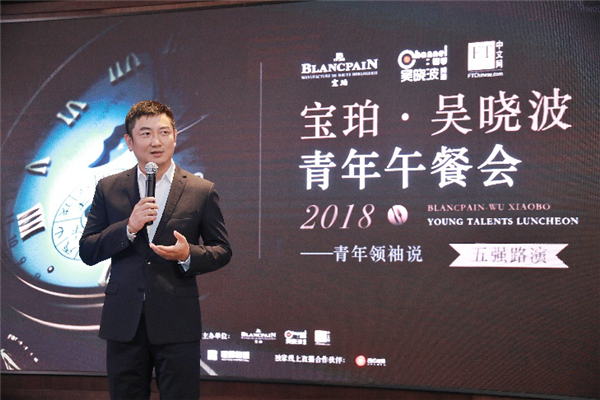 深圳新闻网讯 近日,由瑞士高级制表品牌宝珀Blancpain联合吴晓波频道、英国《金融时报》FT中文网(FTChinese.com)共同发起的“宝珀·吴晓波青年午餐会”通过网络投票和专家评委评选诞生的5位候选人,在杭州白沙泉进行了最后的现场路演PK,著名财经作家吴晓波、宝珀中国区副总裁廖信嘉和FT中文网总编辑王丰坐镇本次路演评委席。最具商业抱负和社会贡献的青年企业家,将获得和财经作家吴晓波、宝珀中国区副总裁廖信嘉、FT中文网出版人张延、英国《金融时报》新兴市场编辑兼副主编金奇等业界专业人士共进午餐的机会,并获得瑞士高级制表品牌宝珀腕表一枚。