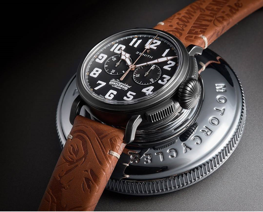 为传承复古机车的文化与精神,助力慈善募款,真力时特别推出飞行员系列TYPE20 TON-UP御行计时码表DGR特别版腕表,全球限量五枚,搭载真力时自产4069型EL Primero自动机芯,以5赫兹(每小时36000次)提供动力。这枚酷炫的表款兼具复古与运动,向忠于挑战,不随波逐流的骑士致敬。
