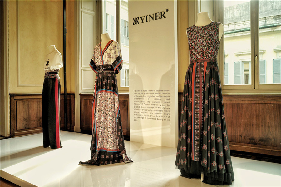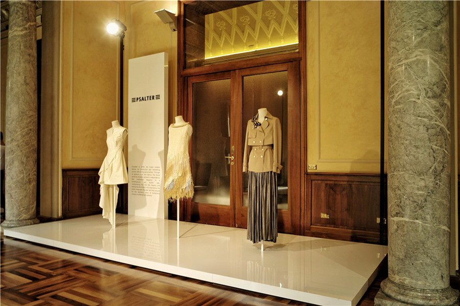 图为影儿时尚集团在米兰时装周期间举办的静态展