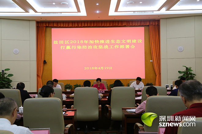 深圳新闻网讯(记者 郑创彬 邓雪婷)4月19日上午,盐田区召开加快推进生态文明建设、打赢污染防治攻坚战工作部署会,严格落实市委、市政府关于治水提质、蓝天行动、可持续发展、生态文明建设等工作部署,深入推进《盐田区2018年加快推进国家生态文明先行示范区建设行动计划》提出的8个方面136项具体任务。盐田区委书记杜玲在会上强调,必须进一步自我加压,以走在最前列的姿态圆满完成市里下达的各项污染防治任务,坚决打好污染防治攻坚战,持续提升生态文明建设水平,上下同心、共建共享天蓝地绿水清的美好盐田。区领导时卫干、王琨、罗毅等出席会议。