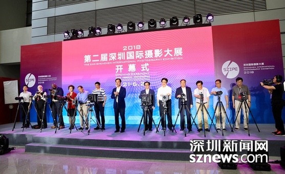 第二届深圳国际摄影大展现场,嘉宾按下相机快门,寓示大展开幕