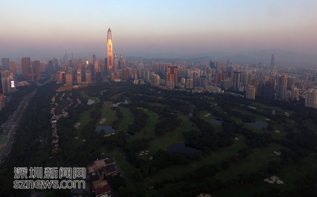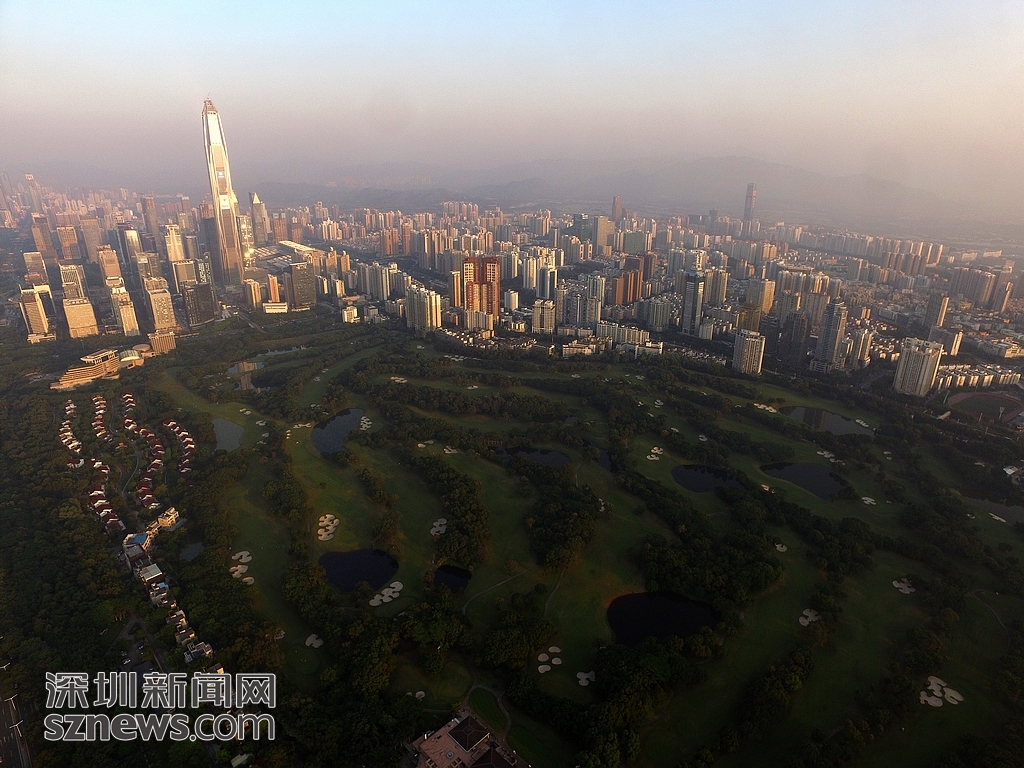 从深圳高尔夫俱乐部球场俯瞰,能够看到不远的平安大厦