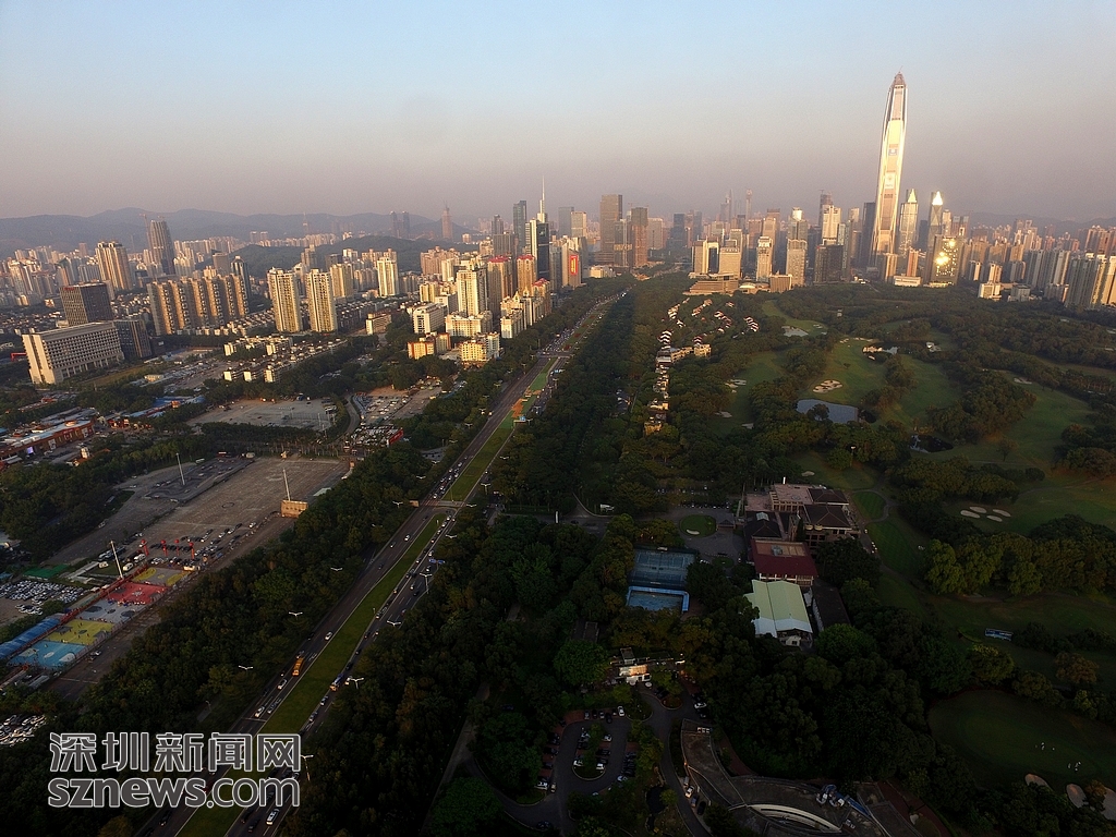 从高空俯瞰,深南大道就位于深圳高尔夫俱乐部球场旁边