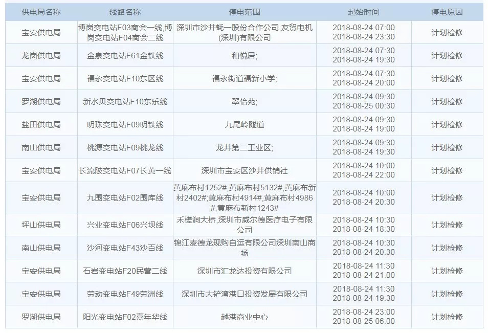 8月24日停电区域