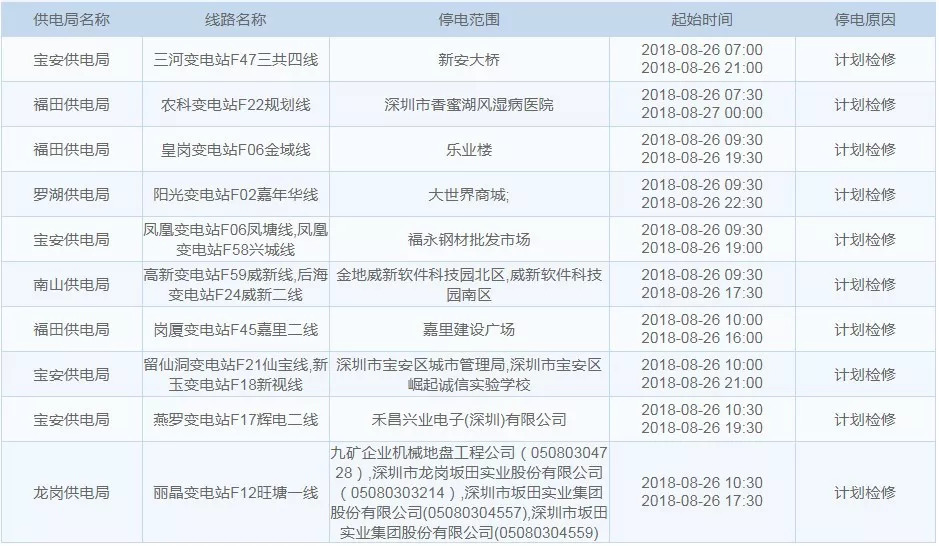 8月26日停电区域