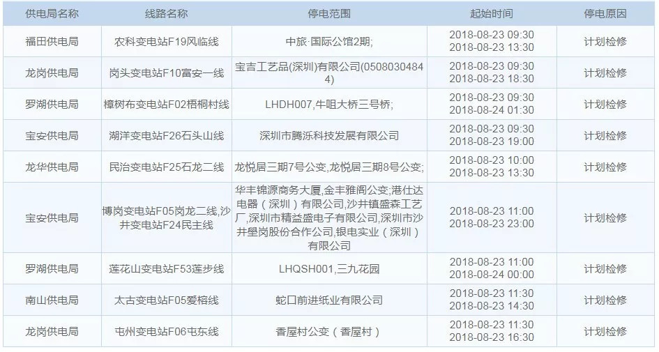 8月23日停电区域