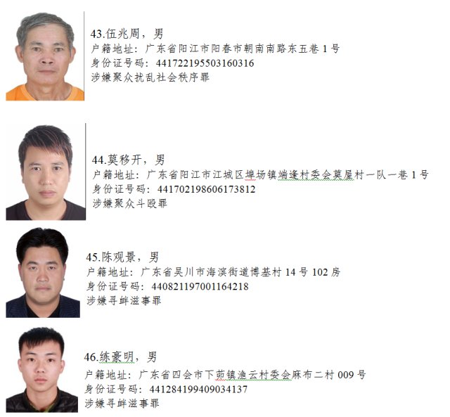 悬赏通缉!广东这50名黑恶势力嫌犯在逃