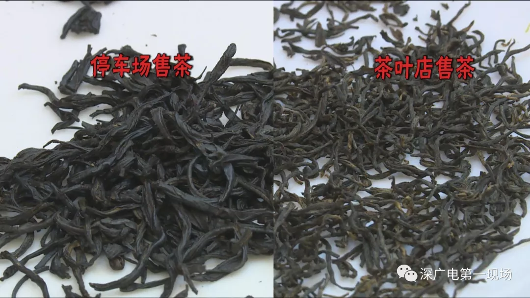 今天,记者也来到位于景田片区的中国茶宫茶叶批发市场,一家长期经营红茶的店家介绍,他们店就卖有正山小种和白茶,记者也拿出了刘女士在停车场购买的茶,和店家销售的正山小种做了对比。店家介绍,停车场售卖的正山小种茶,一小包为标准的5克包装,分量倒没有问题,但茶叶外观和口感上就有说头了。