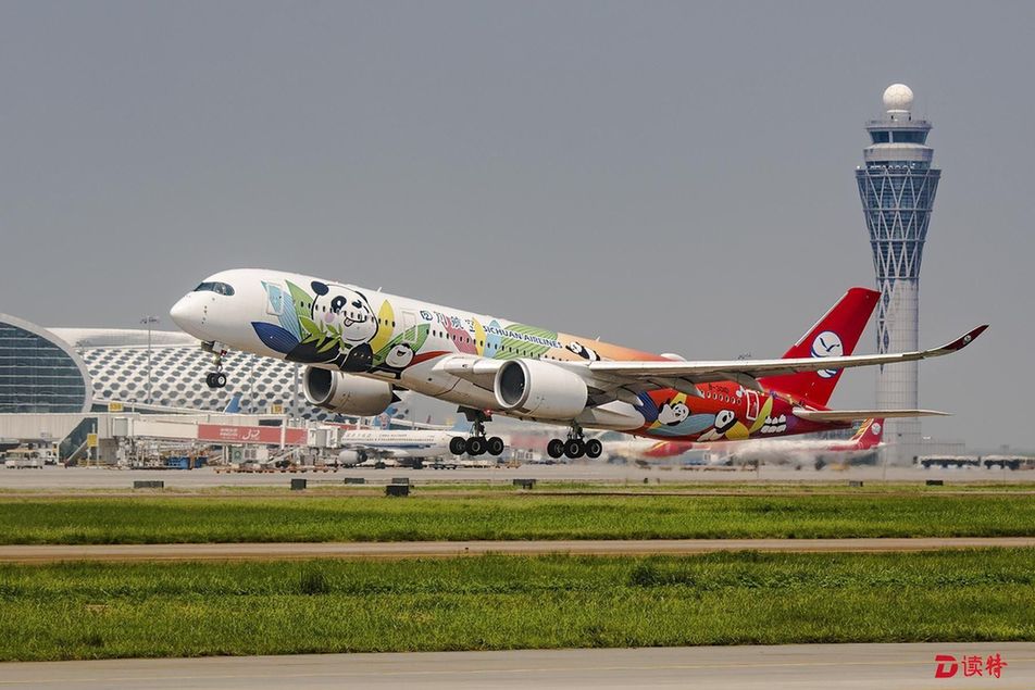 原标题:川航A350飞机首秀深圳 “熊猫彩绘”惊艳深圳机场