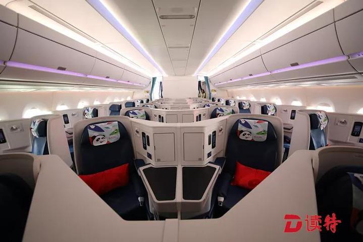 除了色彩缤纷的熊猫彩绘之外,机舱内的熊猫元素随处可见,仿佛把大熊猫基地搬上了天。