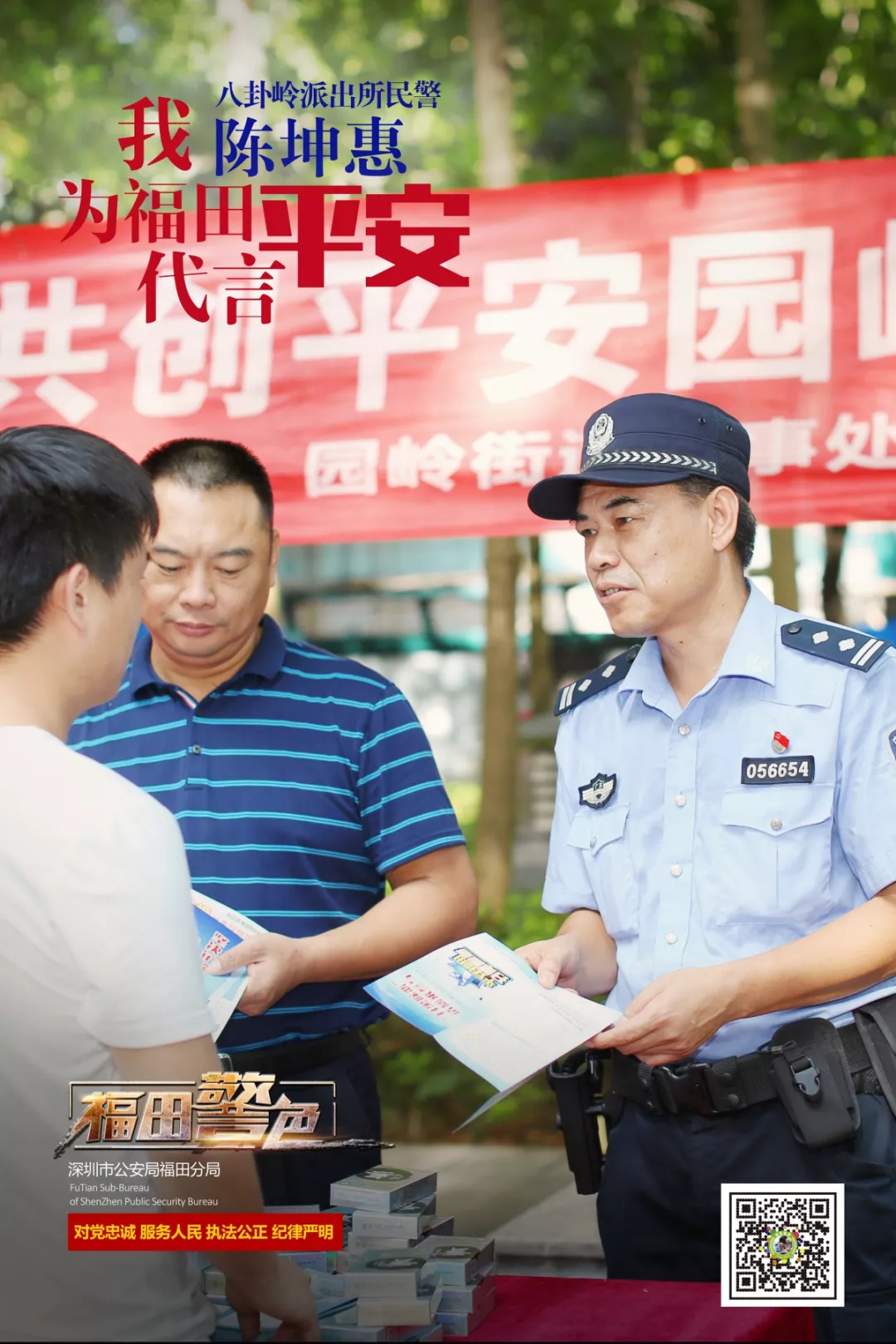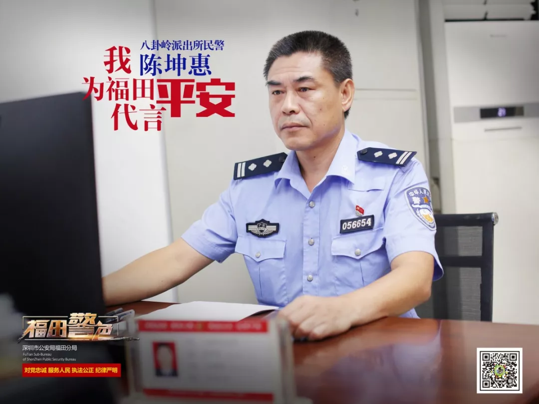 陈坤惠,48岁,1995年1月加入福田警队。现为八卦岭派出所华林社区民警,曾荣获优秀共产党员1次,优秀公务员2次。
