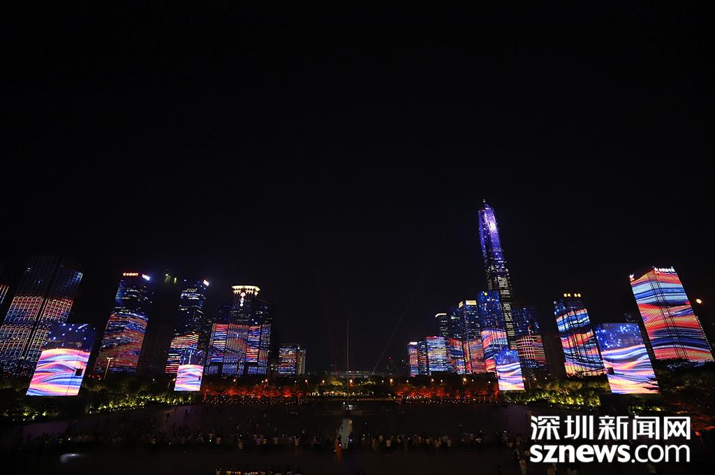 深圳新闻网9月29日讯(记者 钟鸿冰 杨浩瀚 刘庆康 涂胜 实习生 张林羽 通讯员 崔嵩)为庆祝改革开放40周年,9月28日,“辉煌新时代”深圳中心区灯光表演正式首秀。“辉煌新时代”灯光表演包括山海之城、改革之窗、创新之都、和谐之境四大篇章。在市民中心周围,以平安大厦为地标,通过中国古典风及波普艺术等不同表现手法和智能管控技术,实现43栋楼宇灯光联动,点亮流光溢彩的中心区璀璨夜景。