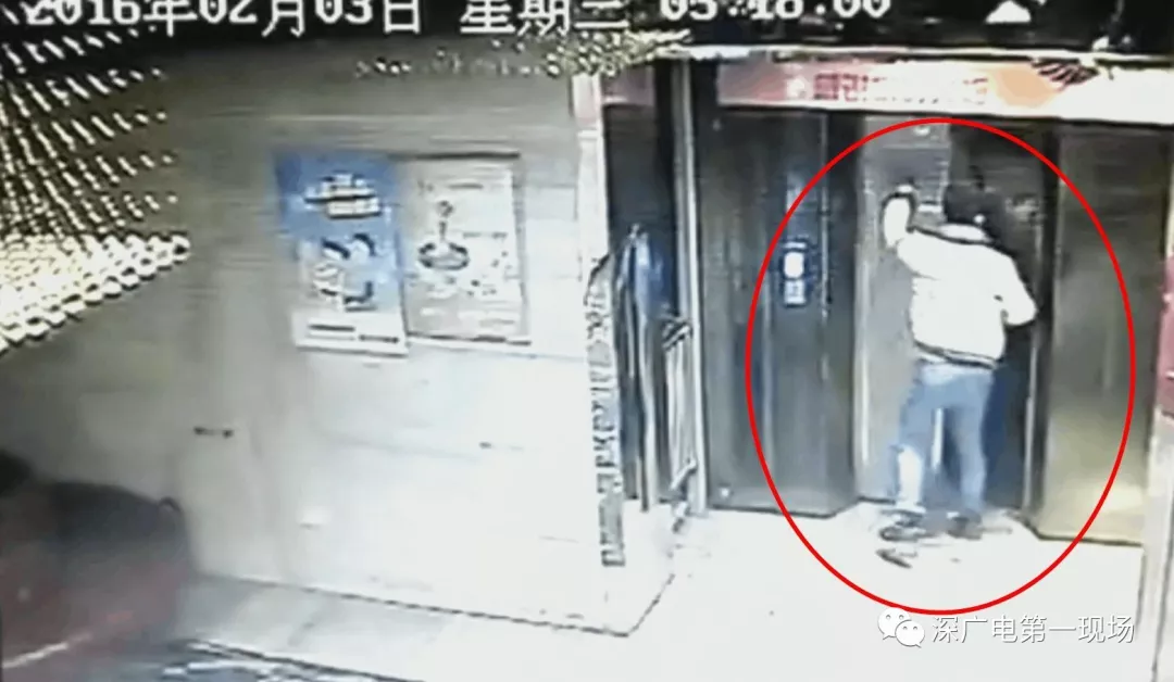 这名男子也是从远处飞奔向电梯一脚就踹开了厢门,然后不小心踏空掉下了电梯井。