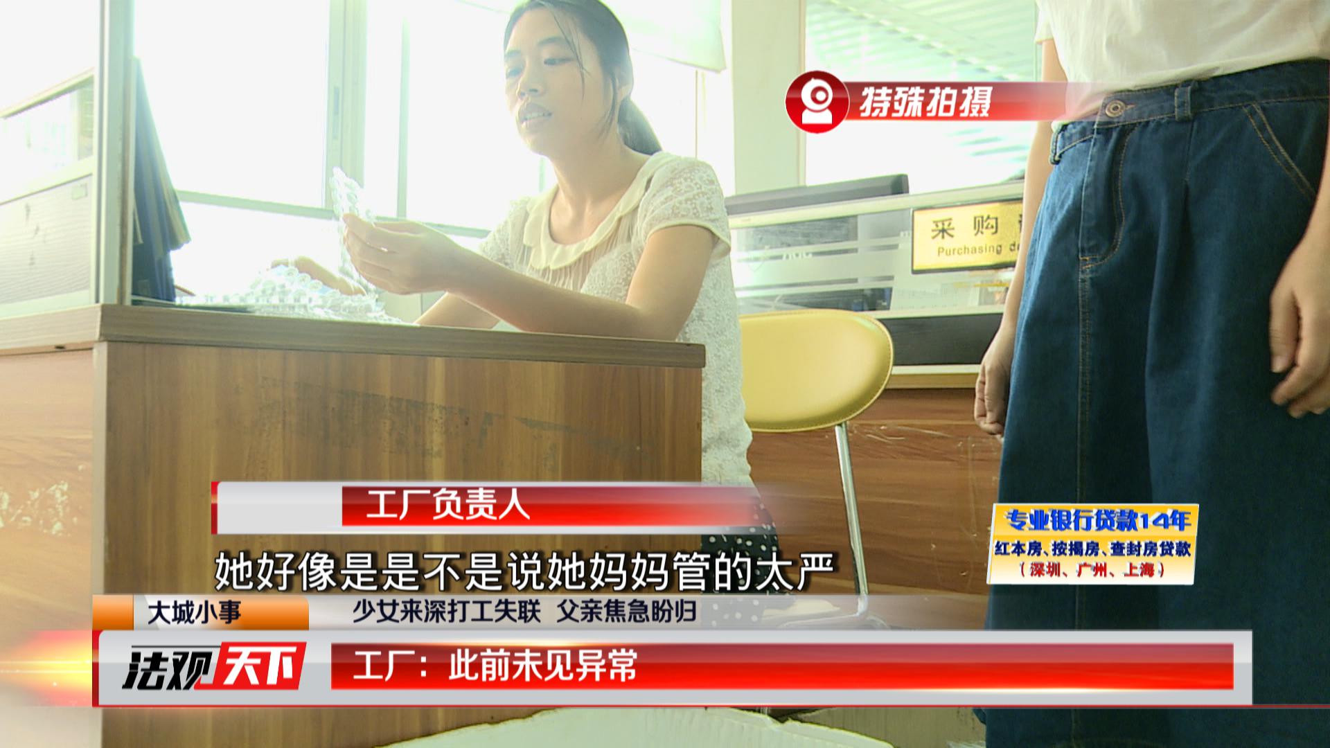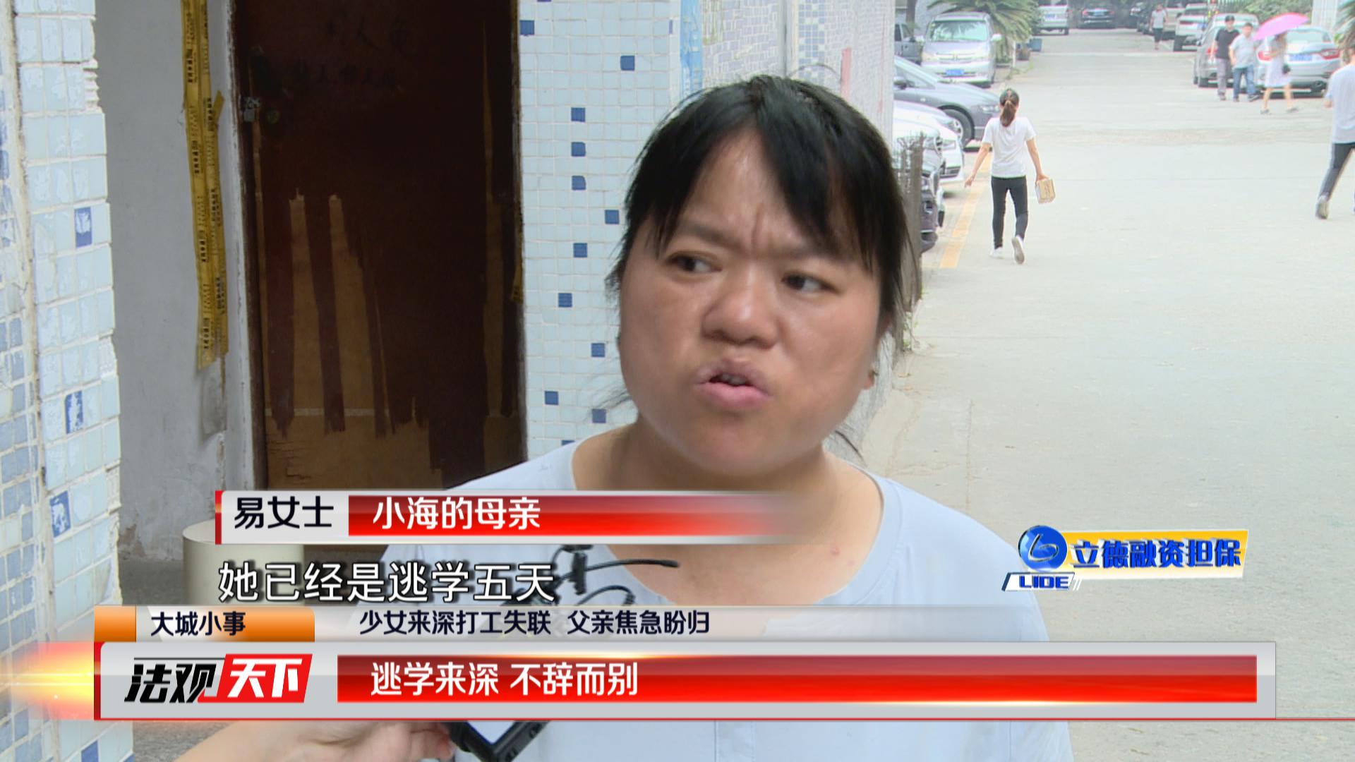 与小琴一起失踪的还有小海,小海今年才14岁,是小琴的初中同学,两人当初是一起从邵阳逃学来到深圳的。小海和小琴来到深圳后,跟易女士进了同一家工厂。9月30号晚上,正是易女士最先发现两个女孩失踪的。她告诉记者,此前两个孩子一直都很正常。女儿突然不辞而别,至今十多天没有跟家人联系,她既担心又不解。小海的母亲易女士告诉记者,这么多年以来,都是小海的奶奶把她带大的。自己一直在外面打工挣钱,觉得小海跟她的感情也不深。