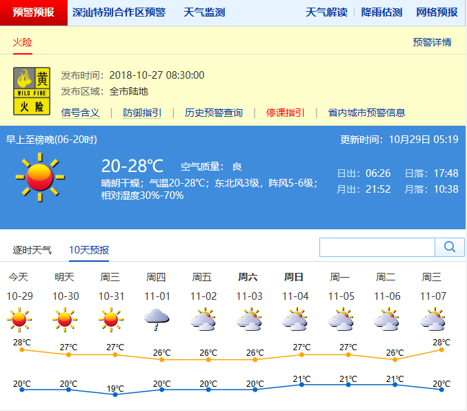 气象专家提醒,近期我市天气持续干燥,火险风险高,建议市民注意用火安全;31日-11月2日沿海和高地北风大,建议市民避免海上活动和海岛旅游,提前安排出行;“玉兔”进入南海后期路径和强度变数较大,请关注深圳市气象台发布的最新信息。深圳特区报讯(记者方胜)