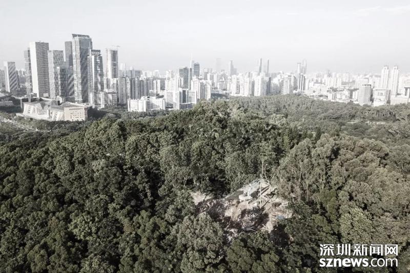 莲花山公园山顶公厕拆除后的空地航拍图(图片来自雅本建筑微信公众号)