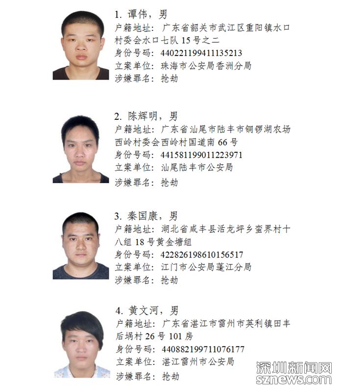 深圳新闻网11月5日讯(记者何畅)广东省公安厅近日发布悬赏通告:广东省公安厅决定从即日起公开悬赏通缉30名在逃涉盗抢骗犯罪嫌疑人,希望广大人民群众积极提供在逃犯罪嫌疑人线索。