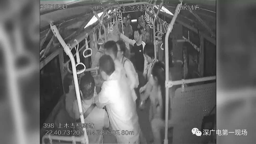 周围的乘客看到这名男子动手打人后,一片哗然,驾驶员立刻将车停在路边并上前制止。