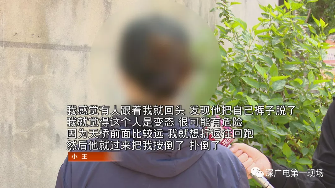 根据小王的回忆和现场监控视频的估算,施暴男子身高约165左右,120斤,圆脸,当时身穿黑色外套,红色打底衫,下身穿着一条灰色休闲裤或牛仔裤。