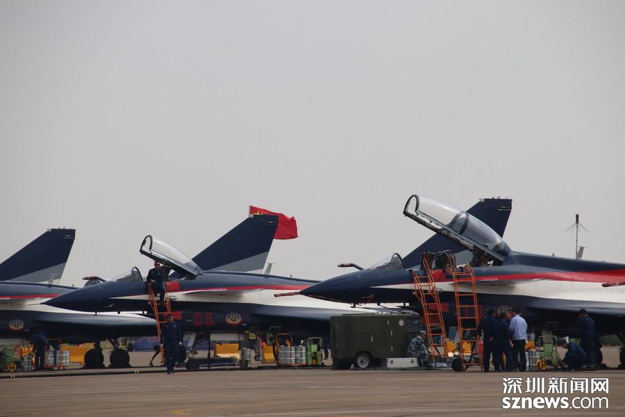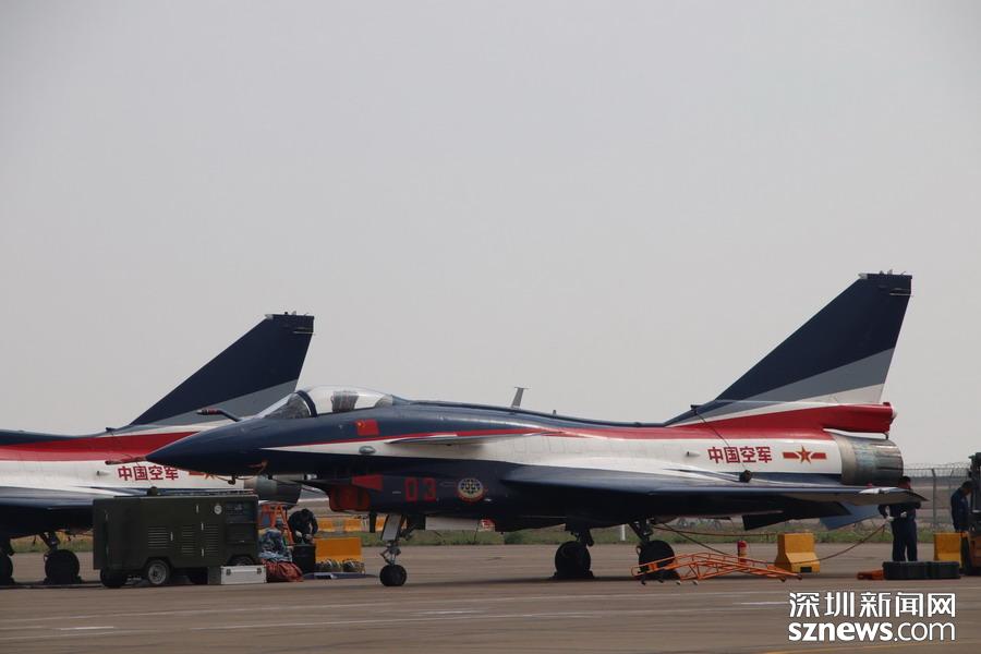 完成飞行表演,在停机坪上的歼-10。