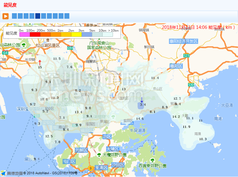市气象局发布能见度实况(数据更新于11月13日14:06)