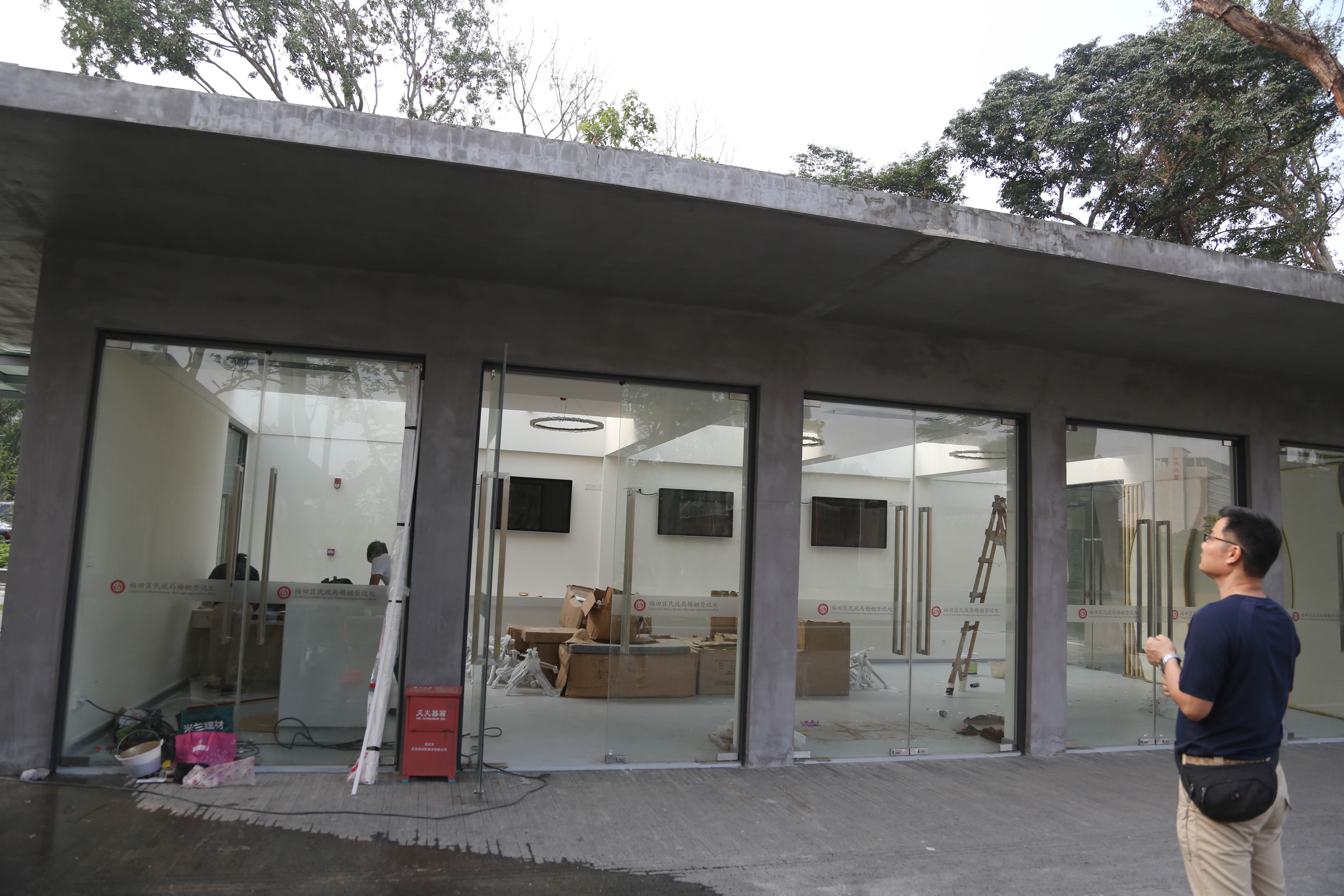 正在最后布置的叫号大厅,地板和天花板基本完成,电脑系统正在调试。