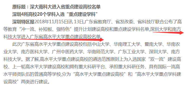 深大和南科大也入选了“重点建设高校”
