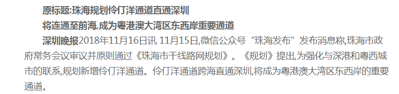 珠海规划新增伶仃洋通道及其西延线,跨海直通深圳