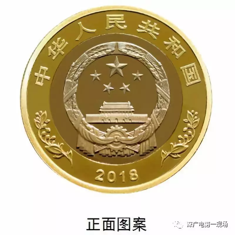 双色铜合金纪念币正面图案为国徽,国徽上方刊“中华人民共和国”国名,下方刊年号“2018”字样,左右两侧为果实图案。