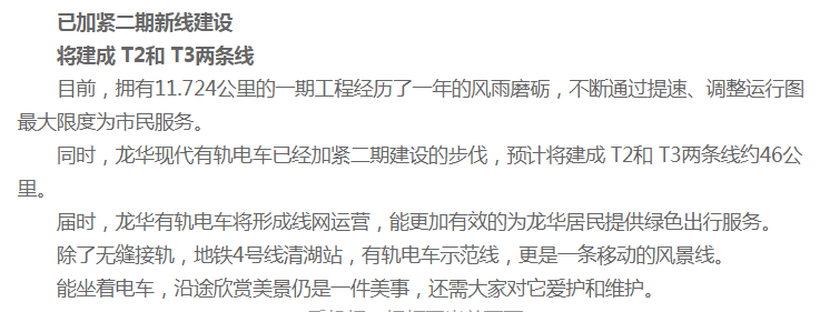 龙华有轨电车也将加紧建设,建成T2和 T3两条线