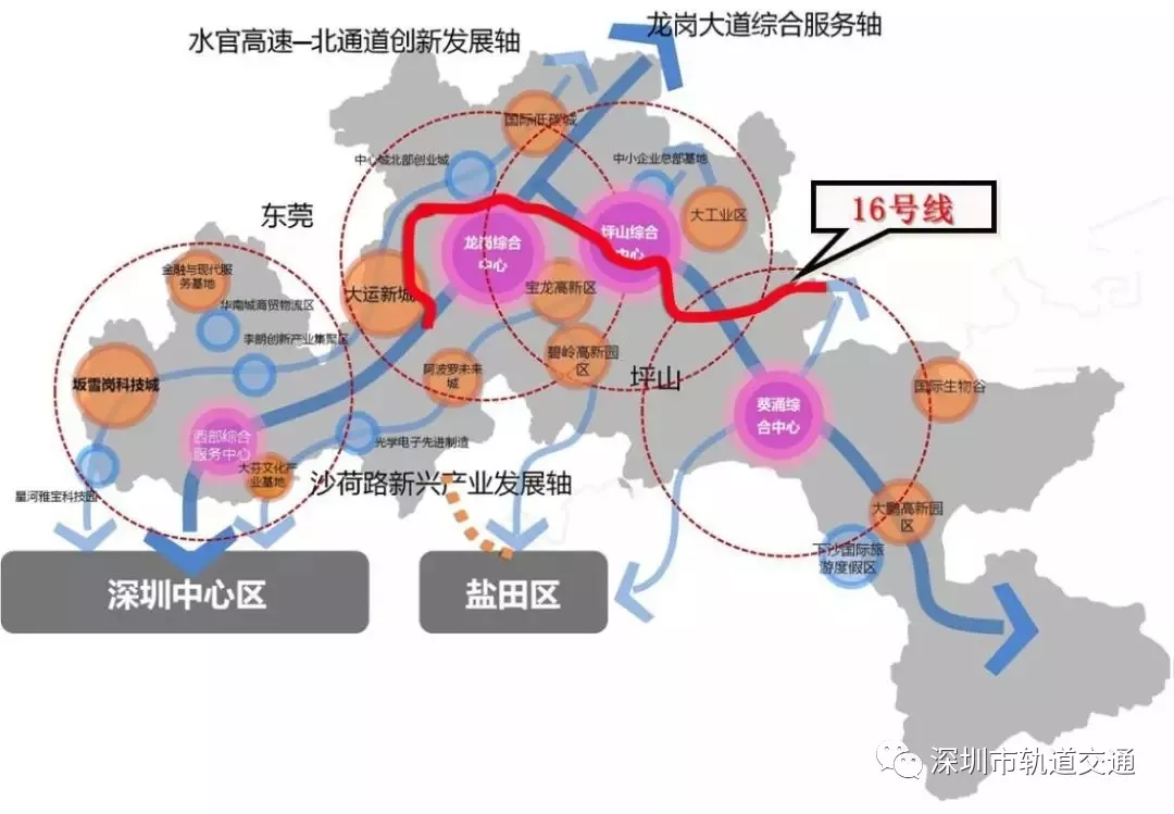 建成后连接大运新城、龙岗中心城、坪山站及坪山区等地区,覆盖龙岗区区域同城化发展主轴,大大缓解交通压力,方便龙岗和坪山市民,实现龙岗中心城与坪山区之间的快速联系,同时带动坪山区的发展,是深圳市实施东部发展战略的地铁线路之一,也是深圳市重大民生工程。另外,16号线将使用全自动运行系统,届时沿线乘客可以体验到无人驾驶地铁的黑科技了!