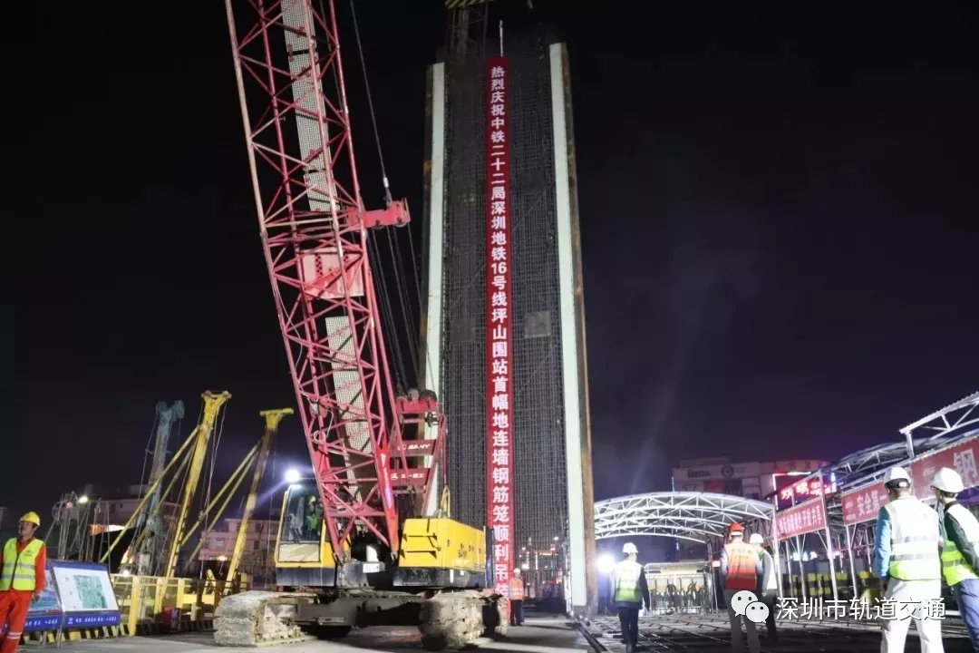 在施工现场,我们可以看见在两台履带吊的紧密配合下,高24米,长6米,宽0.8米的钢筋笼缓缓起吊,一气呵成吊装入槽。顺利入槽后,混凝土浇筑工作随即展开,共浇筑120方。