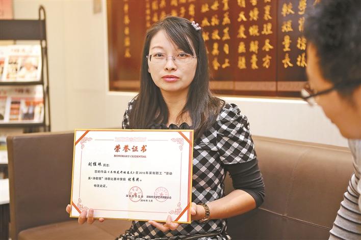 “近期,我刚刚加入了深圳市福田区作家协会。”刘桂珠告诉记者,她从高中的时候就喜欢写作。“后来,我来深圳打工之后,不管工作多忙多累,这个爱好都没有间断过,一直坚持到现在。它已经成为我生命中的一部分了,可以说是一种生活习惯。”
