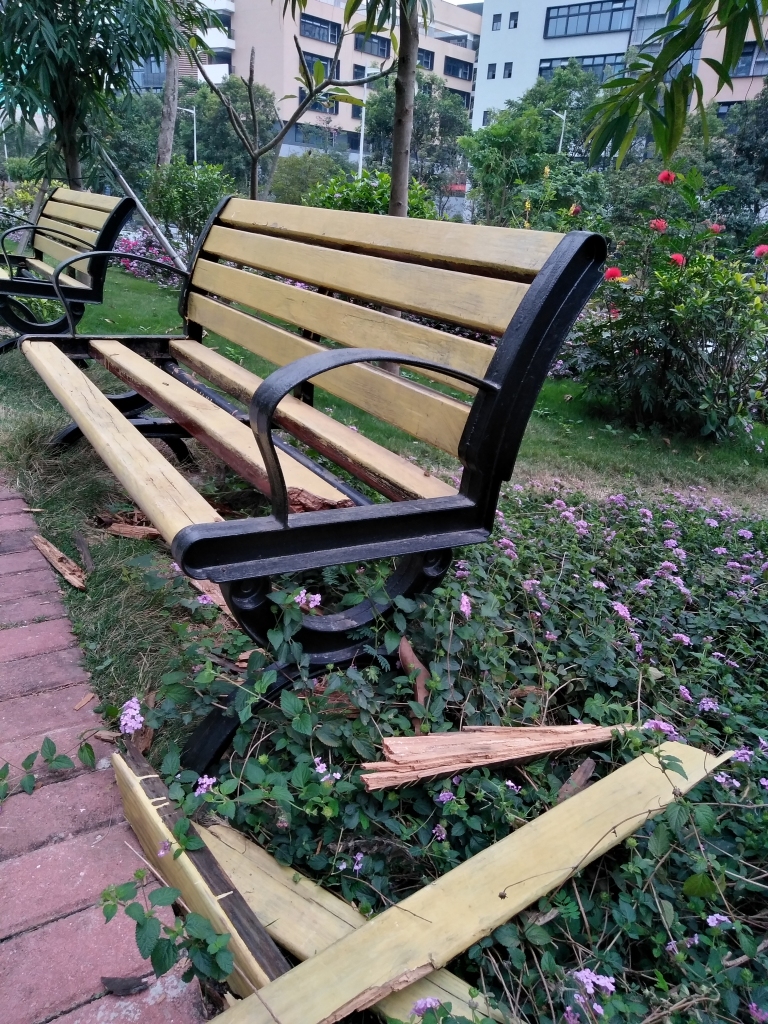 民治逸秀公园内的休闲凳也得治!才开园3个月,休闲凳就变成了这样↓↓