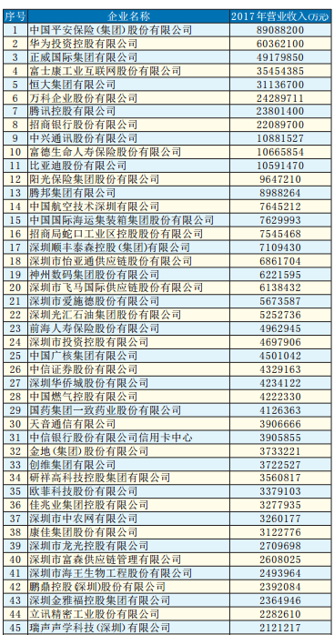 最近,2018深圳500强企业开始公示了