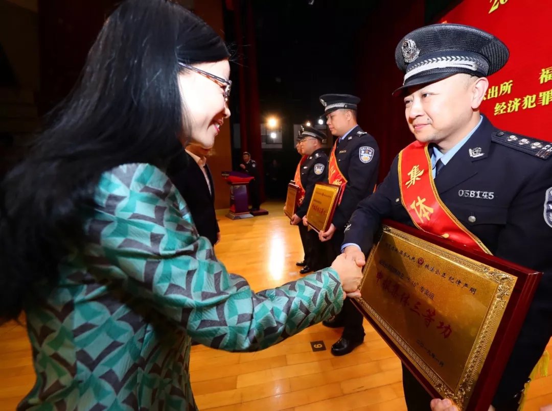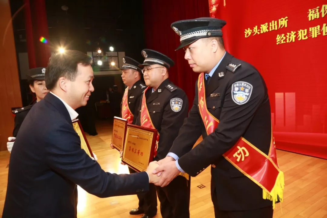▲副区长、公安分局局长段廷杰为嘉奖集体颁奖
