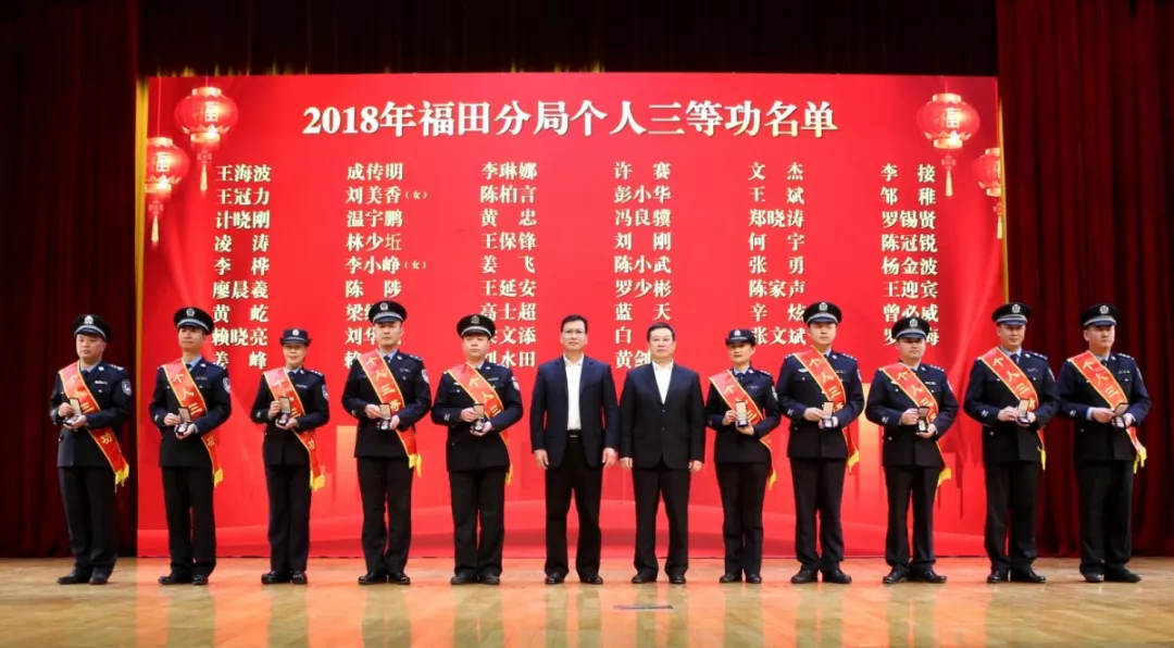 2018年,在深圳市公安局和福田区委区政府的坚强领导下,福田公安分局坚持以人民为中心,强力开展“基础夯实年、科技应用年、改革攻坚年”建设,积极推进公安大数据和智慧新警务战略,深入开展扫黑除恶专项斗争,深化“放管服”改革……警务效能显著提升,治安基础更加扎实,管理服务更加温暖。“星光不问赶路人,时光不负有心人”,福田警队所有民警和辅警不畏风雨坎坷,用365个日夜的默默坚守付出交出了一份平安满意的优秀答卷,让市民群众有了更多、更直接、更实在的获得感、幸福感和安全感。