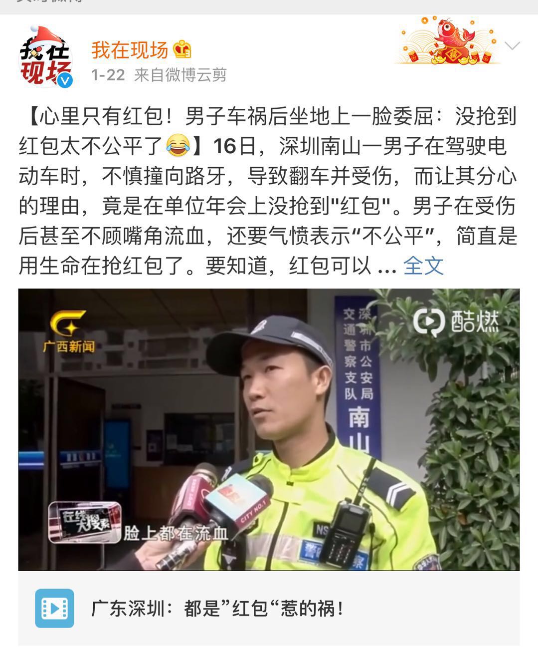 最近,深圳有个男子就因没抢到红包,心里憋屈,在骑车时“分心”摔倒。