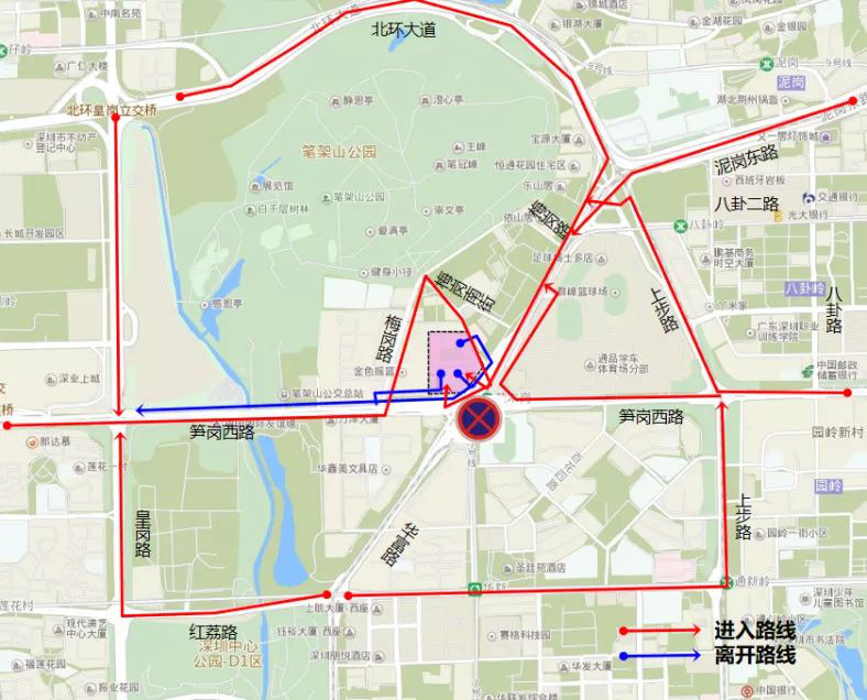 原经笋岗西路东行 -黄木岗立交掉头往医院交通调整为:笋岗西路 -梅岗路 -梅岗南街。