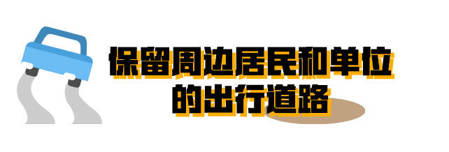 虽然周边主干道全部被封闭了,但是考虑到附近居民和单位的出行问题,周边仍保留了部分辅道并设置疏解路。