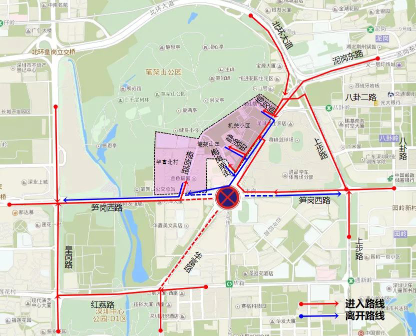 去往市政设计大厦及福田税务局的车辆,交通调整为:红荔路 -华富路。