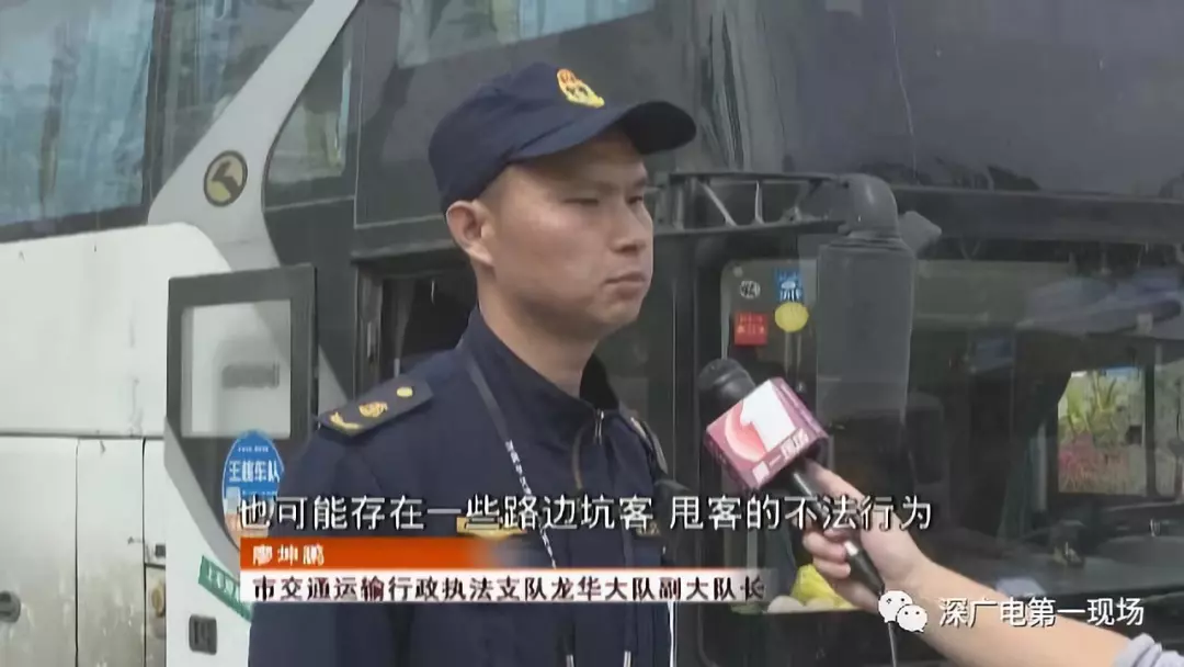 随后,记者将大巴车非法营运的情况反映给深圳交通运输行政执法支队龙华大队。很快,执法人员来到了现场。下午1点30分左右,20多名乘客上了一辆大巴后驶出了集合点,执法人员立即采取行动。