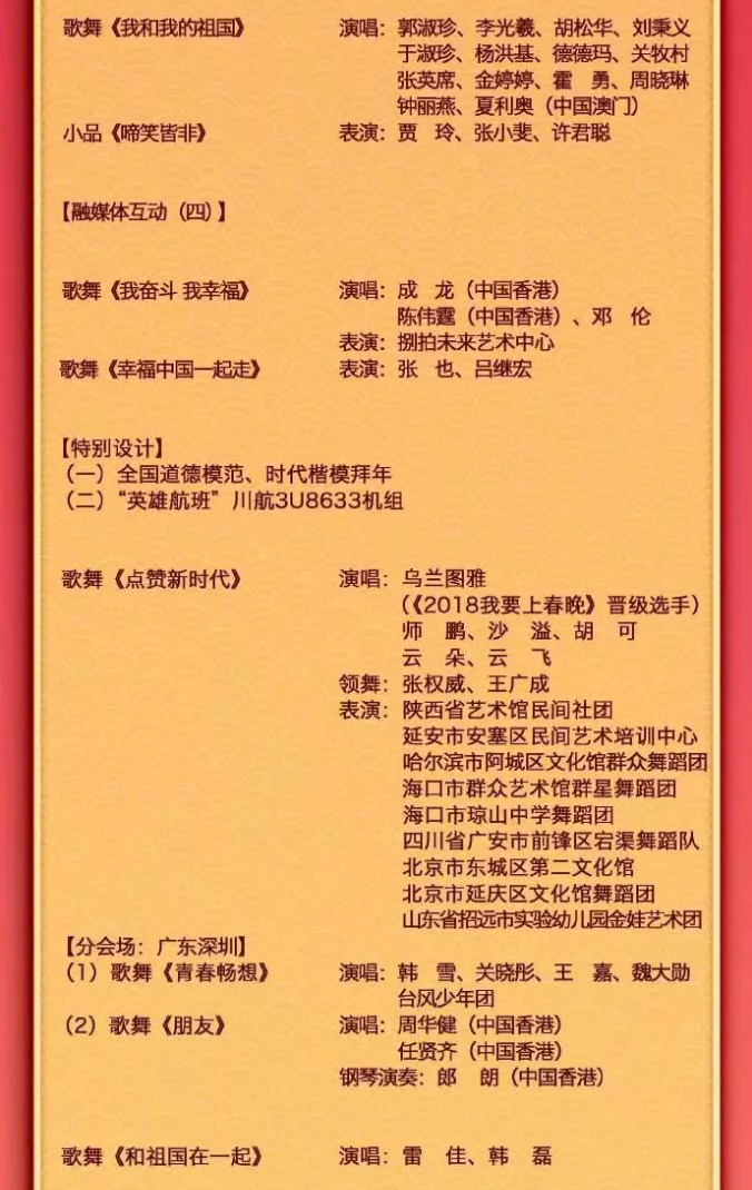 2019春晚节目单出炉!深圳分会场三节目入选