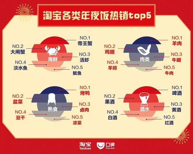 海鲜、肉类、熟食、酒水是消费者最爱在淘宝采购的四类年货。而啤酒则赢过白酒、黄酒,成为中国人最爱选的年夜饭酒水。