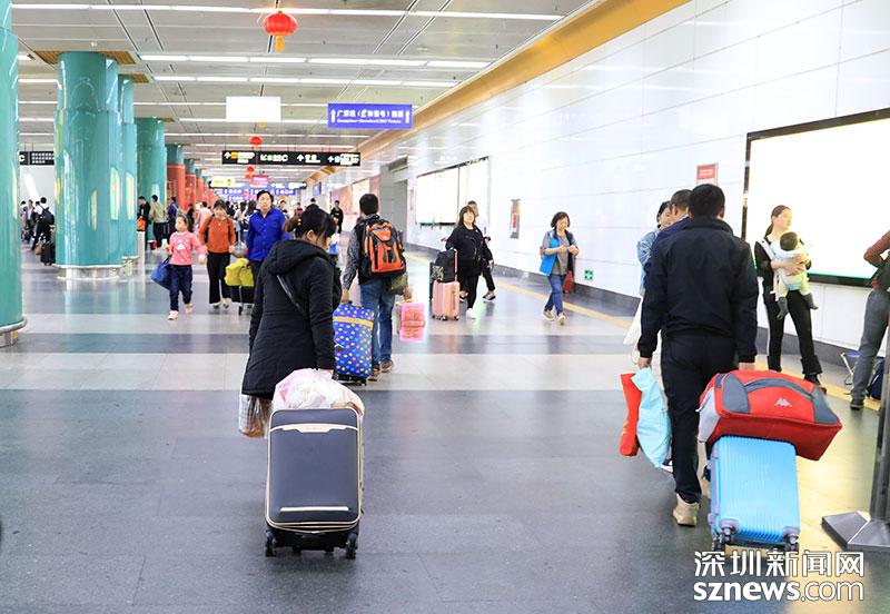 2月13日上午11点左右,深圳火车站内人流密集,不少接亲友的市民聚集在东出站口前