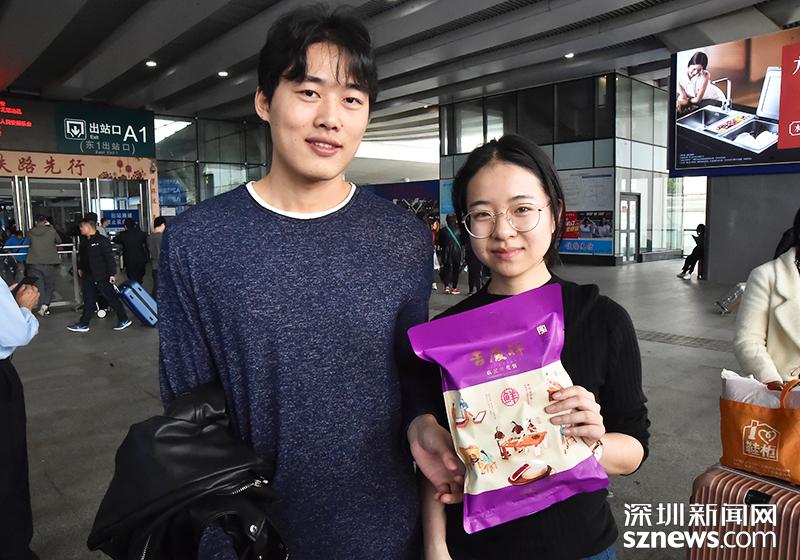 来自昆明的刘小姐这次带了云南特产鲜花饼回来,送给来接她的男朋友以及公司的同事。